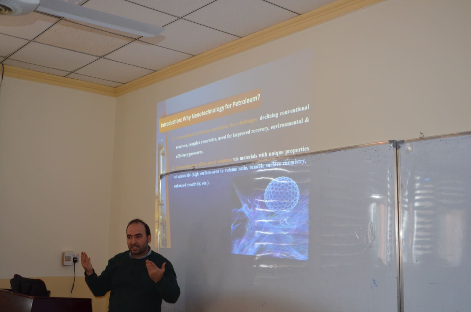 قدّم الدورة كلٌّ من السادة: أ.م.د. غسان حسن عبد الرزاق م. جاسم إبراهيم حمادي م. لؤي أحمد خميس وقدّموا شروحًا علمية مدعّمة بالأمثلة والتطبيقات العملية التي تُظهر أهمية النانو في الصناعة النفطية.
