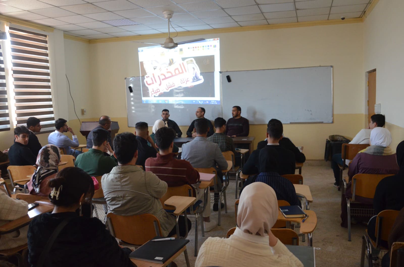 برعاية السيد رئيس جامعة تكريت الأستاذ الدكتور وعد محمود رؤوف المحترم، وإشراف الأستاذ المساعد الدكتور غسان حمد عبدالله عميد كلية هندسة العمليات النفطية نظّمت وحدة الإرشاد النفسي والتربوي في كلية هندسة العمليات النفطية ندوة توعوية يوم الاثنين الموافق ٢٠٢٥/١١/٢٤ بعنوان: "مخاطر المخدرات وتأثيرها على الفرد". جاءت الندوة بالتعاون مع شعبة الإرشاد النفسي الجامعي في رئاسة الجامعة وكلية العلوم الإسلامية، وذلك ضمن جهود الجامعة في نشر الوعي وتعزيز ثقافة الوقاية من الآفات السلوكية لما تشكّله المخدرات من تهديد على الفرد والمجتمع. قدّم محاور الندوة كلٌّ من: م.د. محمد باسم حمادي أ.د. إبراهيم جمعة عيسى من كلية العلوم الإسلامية م.م. صفا خلف عطية من كلية هندسة العمليات النفطية. وتناول المحاضرون التعريف بأنواع المواد المخدرة وخطورتها الصحية والنفسية والاجتماعية، مع استعراض أبرز طرق الوقاية ودور الأسرة والمؤسسات التعليمية في حماية الشباب من مخاطر الإدمان. واختُتمت الندوة بنقاش مفتوح أجاب فيه المحاضرون عن أسئلة الحضور، مؤكدين ضرورة تعزيز الوعي والتعاون المجتمعي للحد من انتشار هذه الظاهرة.