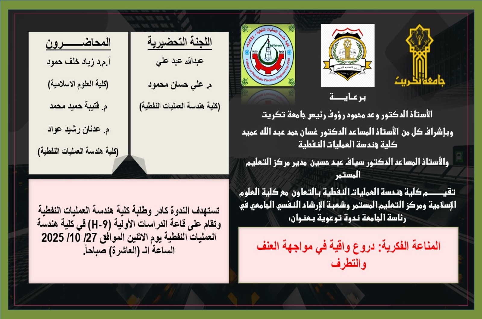 ندوة توعوية بعنوان: المناعة الفكرية دروع واقية في مواجهة العنف واللتطرف